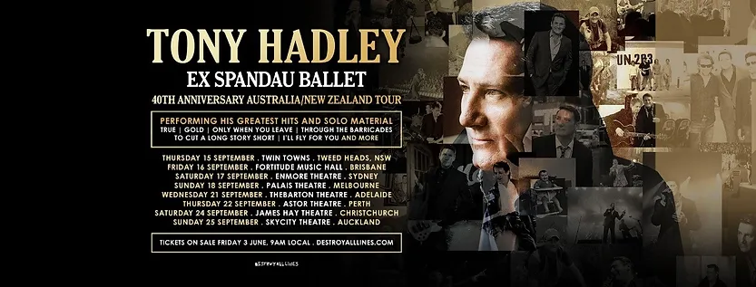 TONY HADLEY, former lead singer from one the biggest bands of the 1980s, Spandau Ballet will return to Australia and New Zealand in September 2022 as he celebrates 40 big years in music.